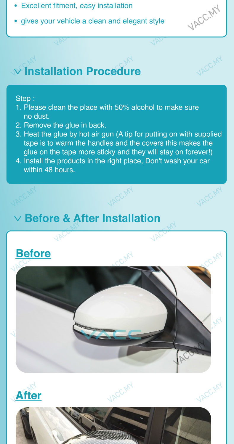 We only replace items if they are defective or damaged. If you need to exchange it for the same item, send us an email at vaccauto@vacc.my and send your item to: 97, Jalan Kristal 1, Taman Limbongan Indah, Melaka, MLK, 75200, Malaysia.