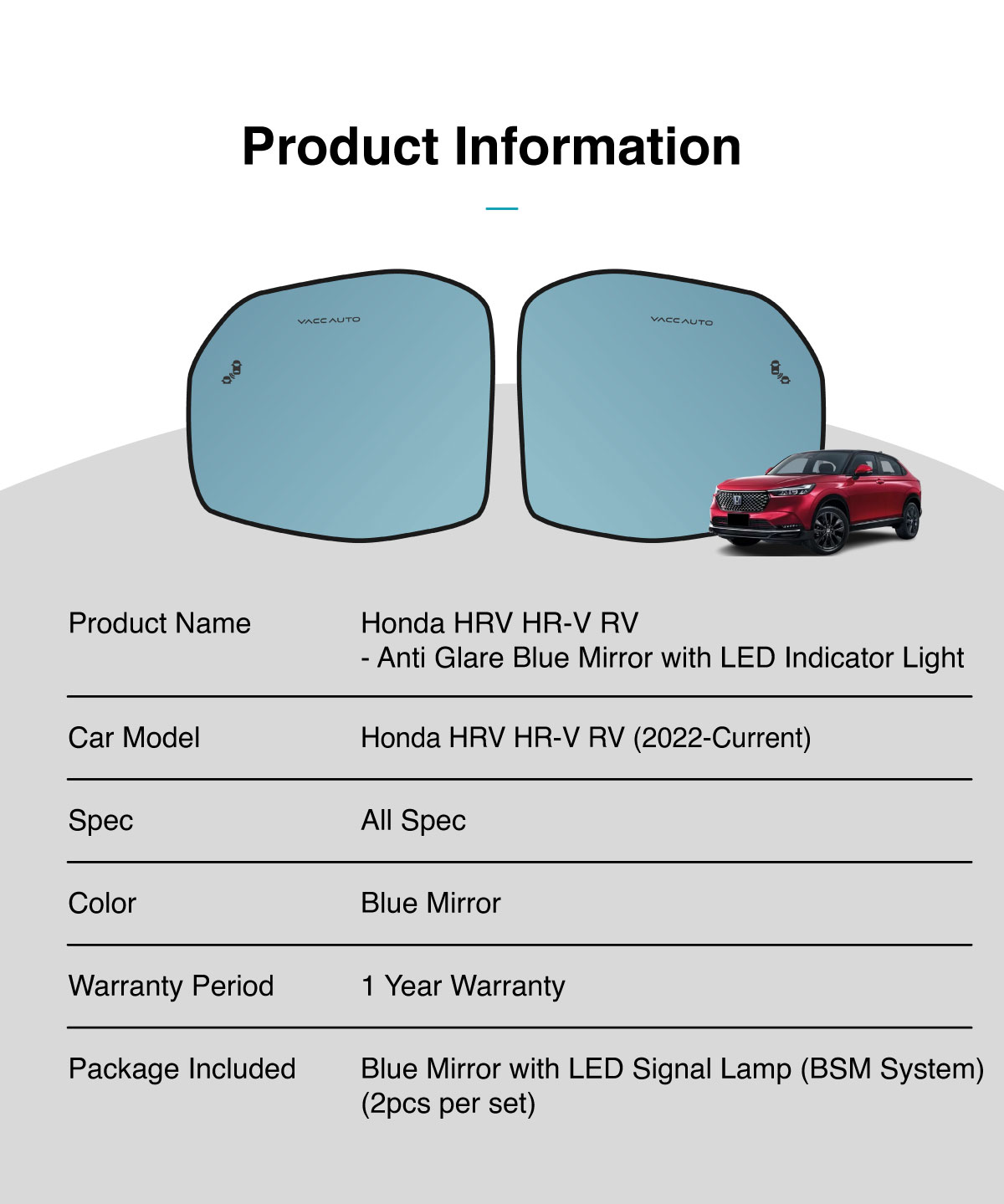 Honda HRV HR-V RV 2nd 2022-Current Blue Mirror with LED Signal Lamp BSM System 1 Year Warranty VACC AUTO