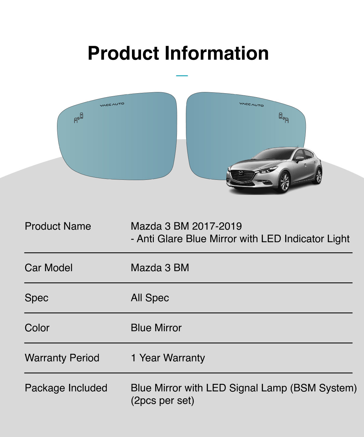 Be the first to review “Mazda 3 BM 2017-2019 BSM Blue Mirror with LED Signal Lamp Side Rearview Winker Mirror Lens VACC AUTO Car Accessories”