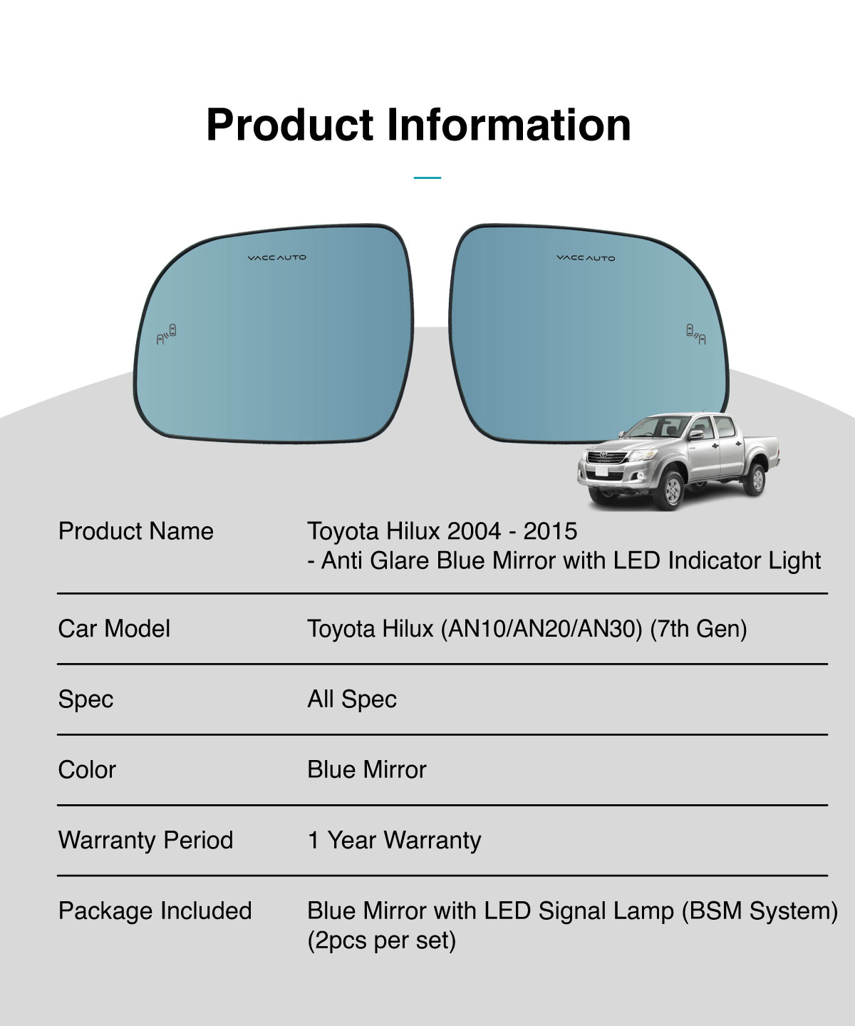 Be the first to review “VACC AUTO BSM Blue Mirror with LED Signal Lamp Side Rearview Winker Mirror Lens For Toyota Hilux AN10/AN20/AN30 2004-2015 Car Accessories”