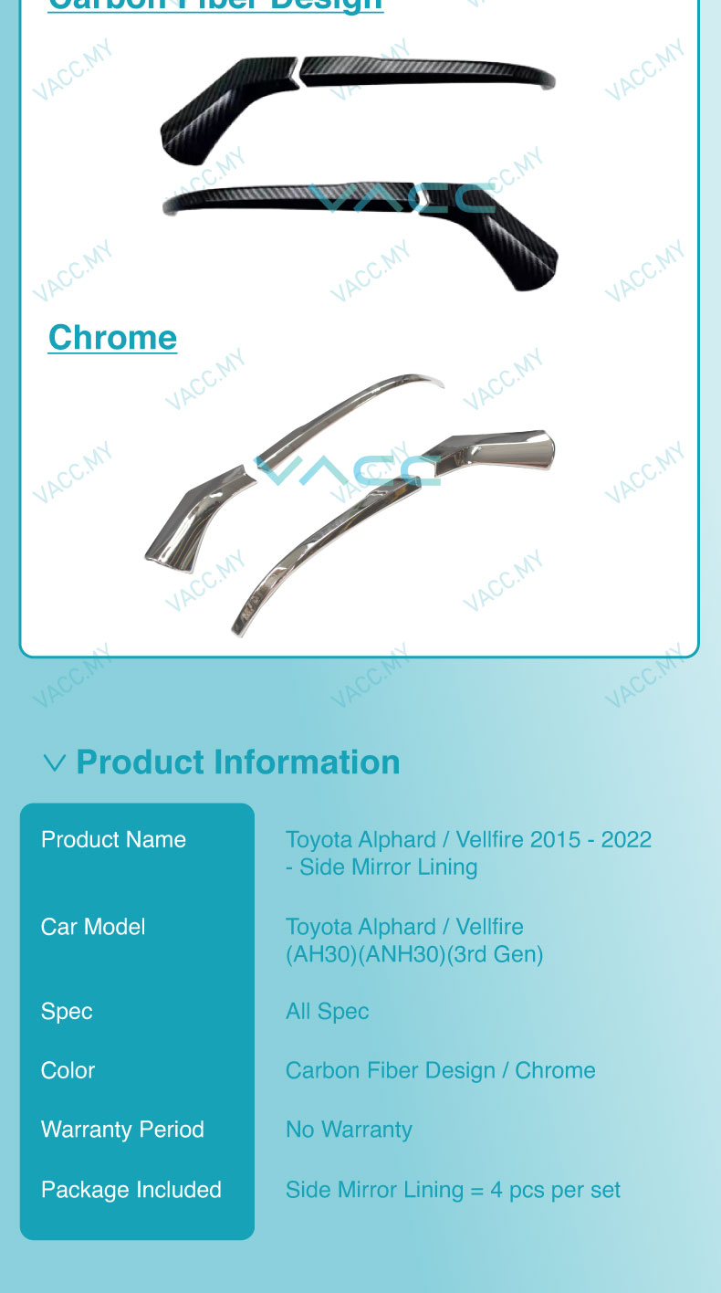 Be the first to review “Toyota Alphard / Vellfire AH30 ANH30 Side Mirror Lining”