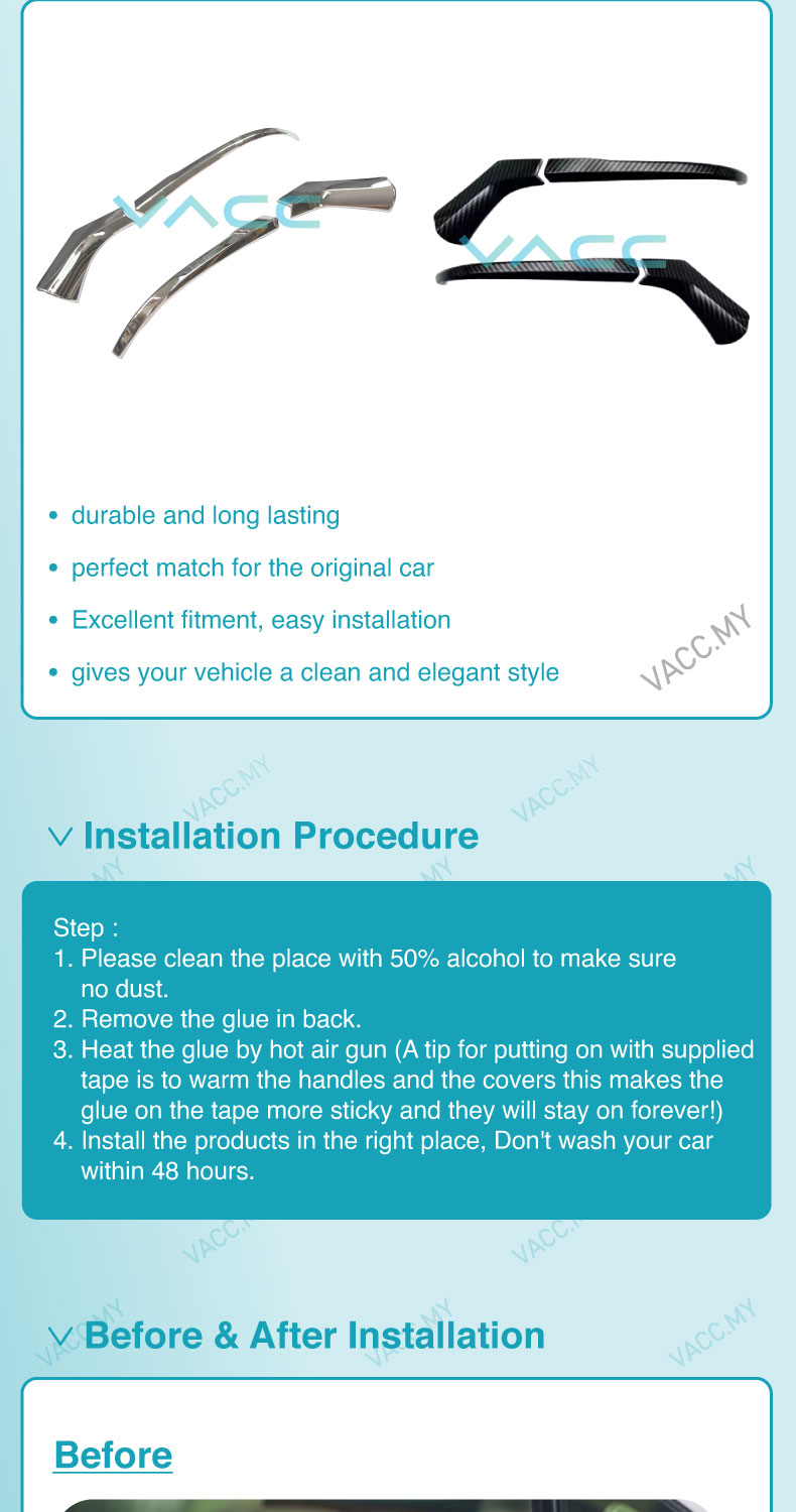 We only replace items if they are defective or damaged. If you need to exchange it for the same item, send us an email at vaccauto@vacc.my and send your item to: 97, Jalan Kristal 1, Taman Limbongan Indah, Melaka, MLK, 75200, Malaysia.