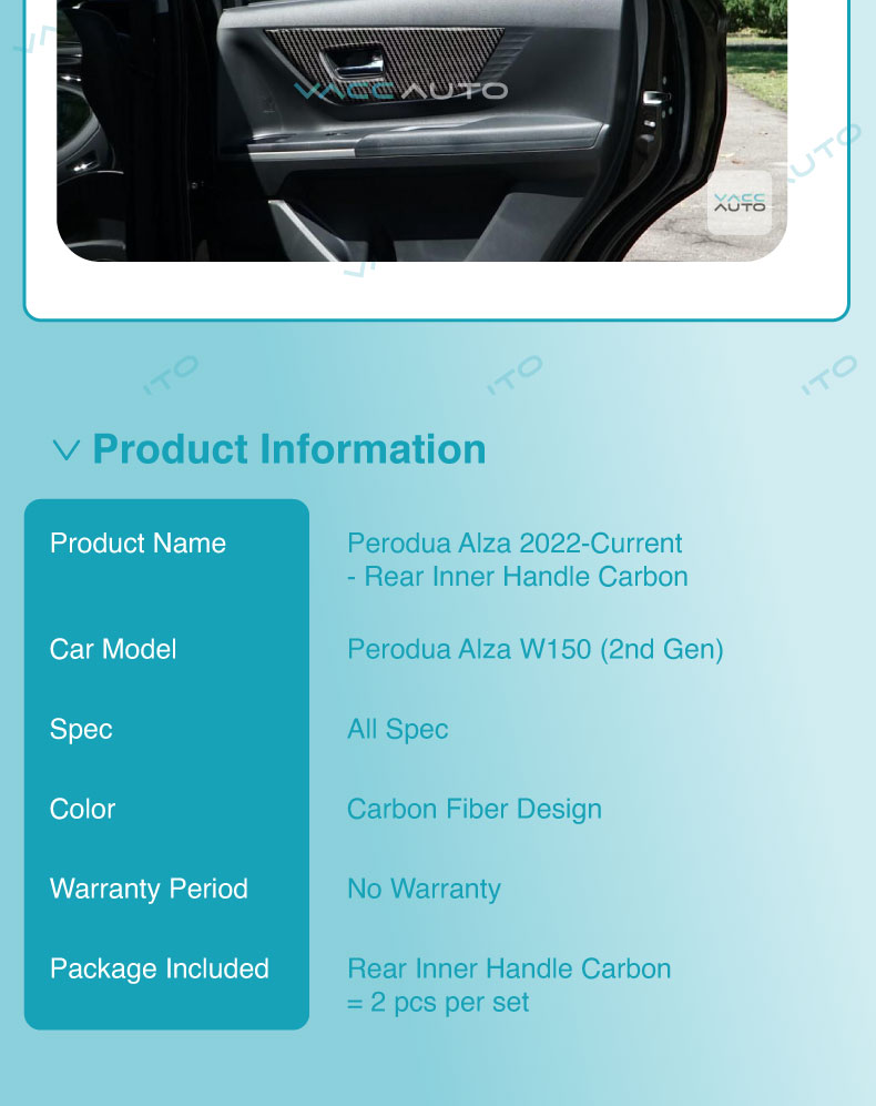 Be the first to review “Perodua Alza 2nd W150 Rear Inner Handle Carbon”