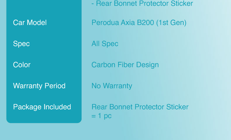 Package Include : Rear Bonnet Protector Sticker Carbon – 1 pc