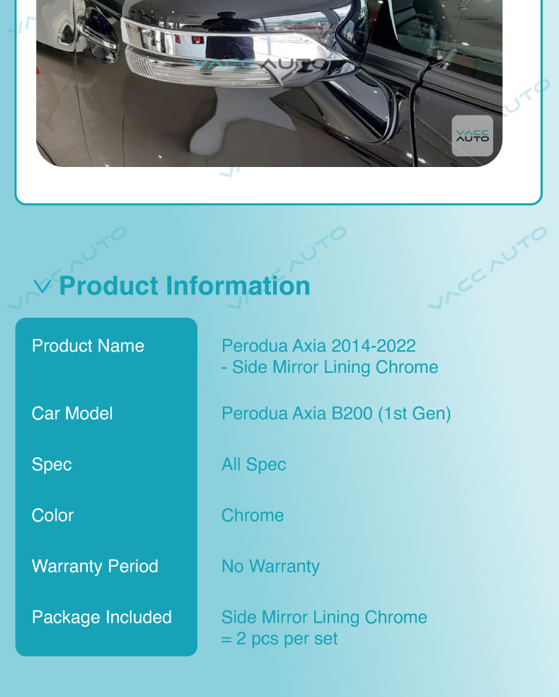 Package Include :  Side Mirror Lining Chrome – 2 pcs